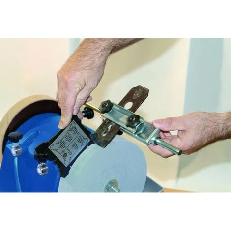 - Un dispositif de maintien pour tranchants droits, fers plats et ciseaux Ă bois fait partie de la livraison