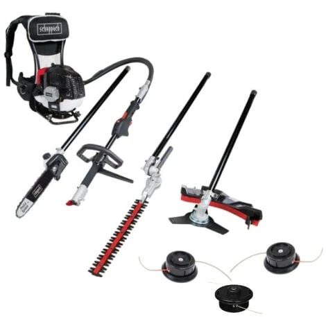 Pack SCHEPPACH comprenant un outil multifonctions 4en1, 2 bobines de 430-450 mmest un outil 4 en 1 : coupe-bordures, dĂ©broussailleuse, Ă©lagueuse, taille-haie, que vous pouvez mettre sur votre dos et vous permettant d’effectuer tous les travaux courants d’un jardin. De plus, associĂ© avec ces bobines (inclus dans le pack), vous pourrez utiliser la dĂ©broussailleuse de façon prĂ©cise et efficace.
