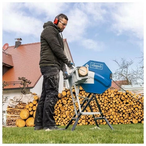 Lascie à bûches SCHEPPACH 405mm – 2200W – HS410 va vous permettre de scier les bûches de bois mais aussi des branches rapidement et dans une position de travail confortable. Doté d’un moteur puissant de 2200 W et d’une lame carbure de 405 mm de diamètre, l’appareil aura ainsi une capacité de coupe pouvant atteindre jusqu’à 140 mm de diamètre. Le couvercle de sécurité breveté supprime quasiment tout risque de contact avec la lame de scie. Lorsque le couvercle est ouvert, des dispositifs de sécurité empêchent de scier par inadvertance.